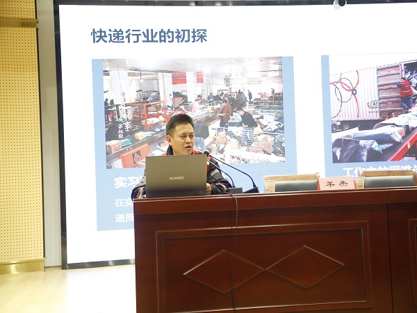 羊杰和沈中焰分别就《劳动精神的弘扬与实践》和《池州跨境电商产业园创业就业服务》作精彩报告。羊杰通过个人在物流行业一线岗位的奋斗故事,生动阐释了在平凡岗位上创造不平凡价值的工匠精神,激励学生树立职业理想、担当时代使命。沈中焰则详细介绍了企业发展历程、跨境电商运营模式及产业园区服务体系,并说明了跨境电商现代学徒制、订单班的参与流程与培养内容,鼓励电商专业的同学们积极把握机会,在实践中积累经验、拓展视野。